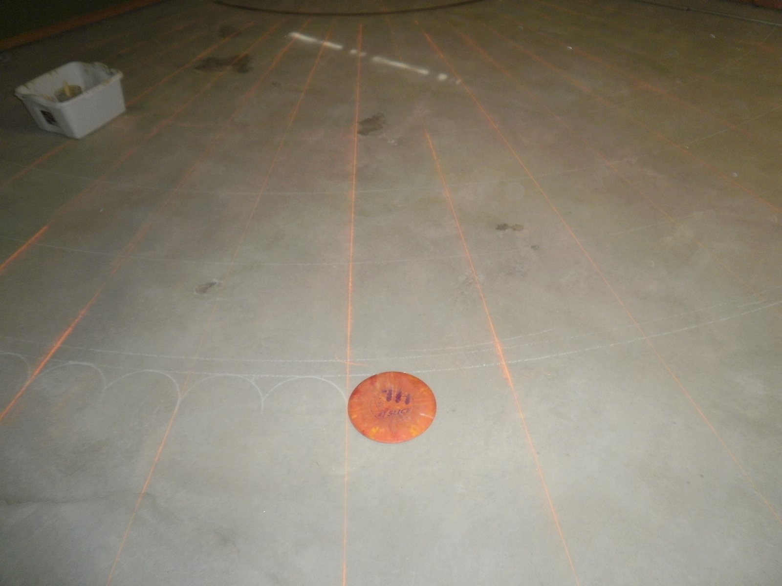 Bet you didn’t know frisbees had multiple uses, such as outlining floor designs.