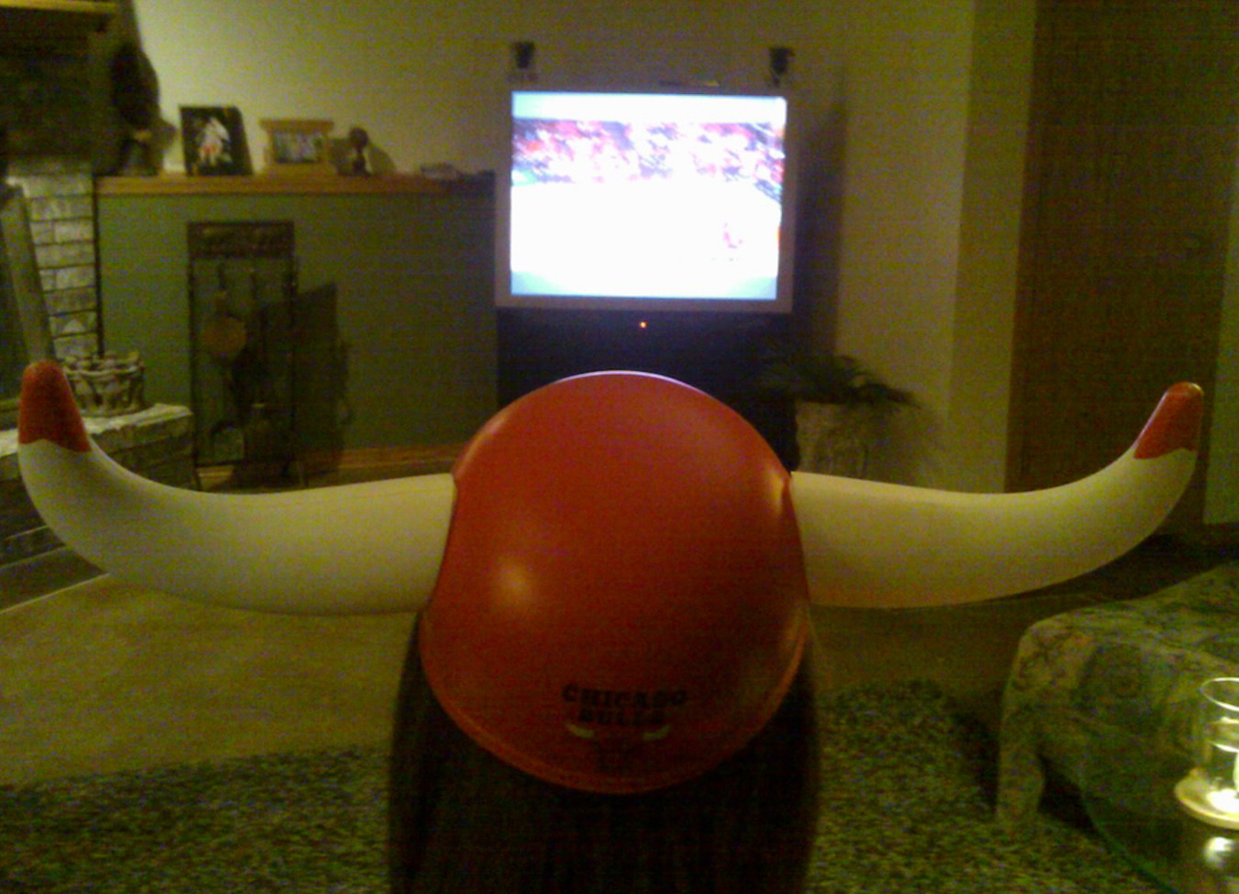 Yep, that’s me. It’s the playoffs. And when it’s the playoffs and the Bulls are running, I break out the horns. You could say I’m D-vout.