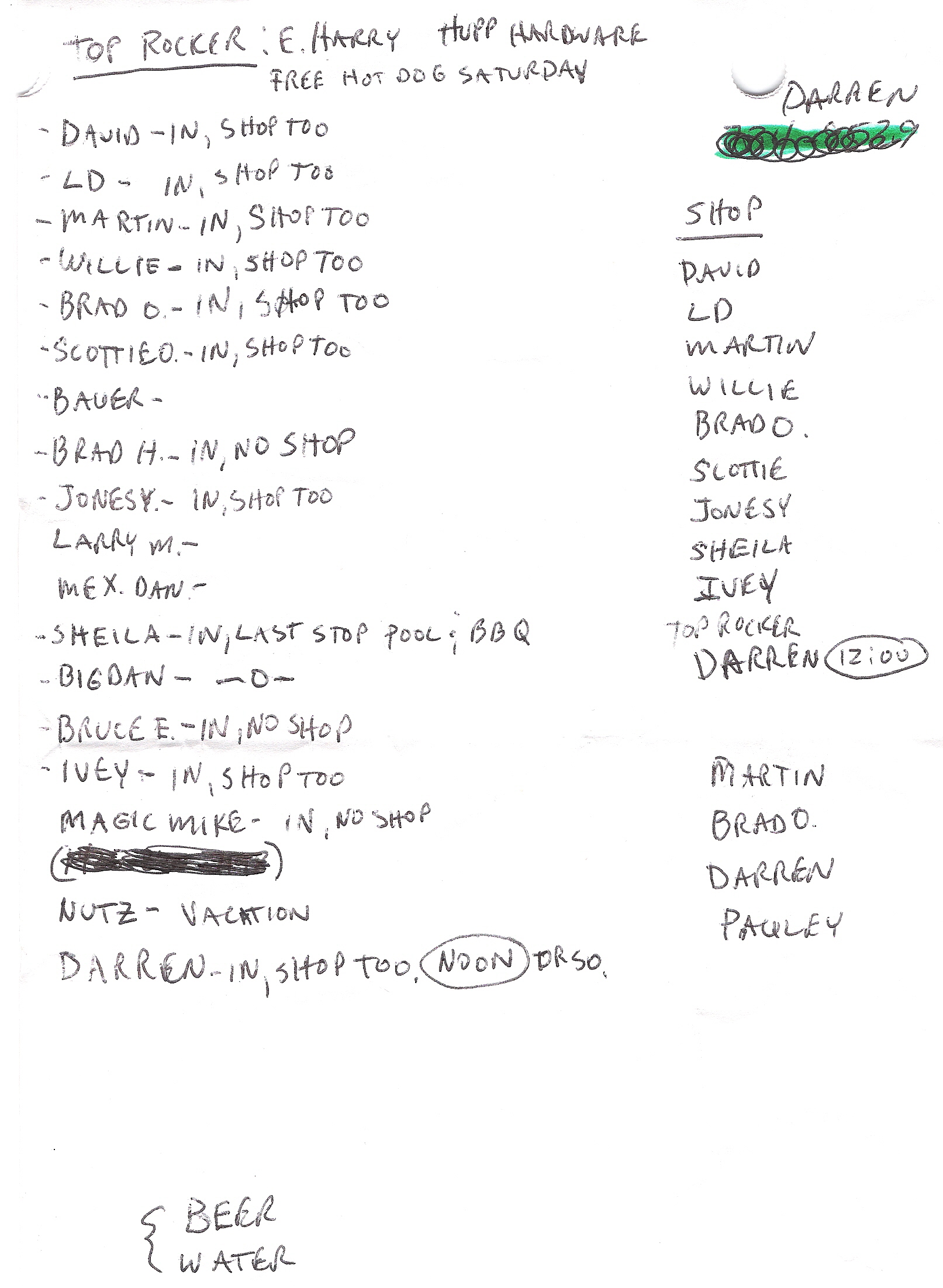 The list of who’s in, who’s out, who’s volunteering their shop/garage as a stopping place to stretch legs, de-numb butts, guzzle a water or beer, have a snack and hit the road to the next stop. It all began at Everybody’s Restaurant at 9:00. Oh, make that 9:00-9:45. And I mean, 9:45.