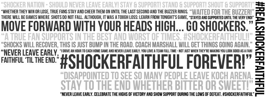 Please, save me and the rest of the fans and the players the distraction of your exodus and give your seats to someone who appreciates being there and experiencing all that Shocker Nation has to offer, someone who stays rooted in place to watch the team exit down the tunnel, not wanting to leave, not wanting for it to be over, someone who casually exits the main doors, still smiling, still talking about the game, whether the outcome was good or bad, because to stop recounting, to drive away, means that the moment is gone. That’s what it feels like to be a fan. That’s what it means to be faithful.