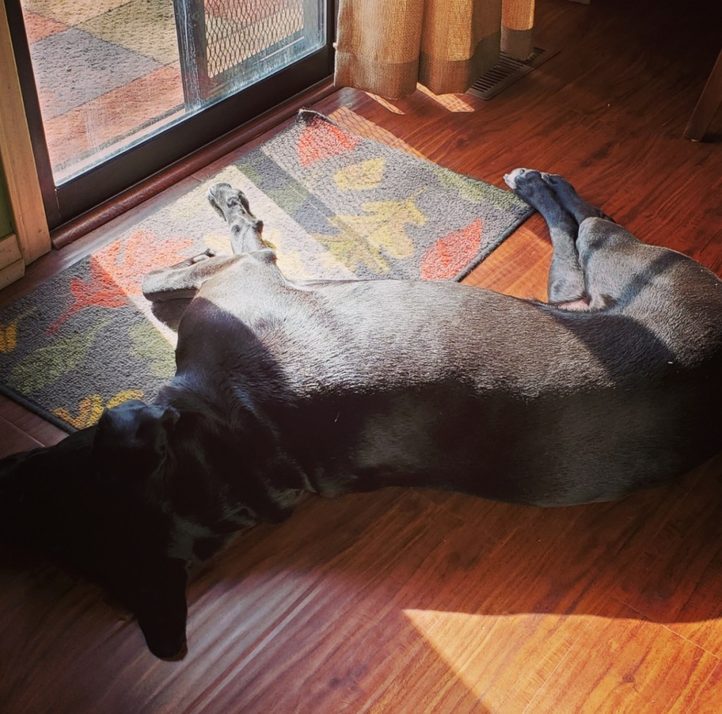 Later, I joined her on the deck, checking emails while basking in the spring equinox sun. Which reminds me, while we’re sheltering in place and non-peopleing, don’t forget to be grateful. I’m grateful for emerald colored moss, sunshine and laughter over the techwaves. I leave you with this by a man I so admired: